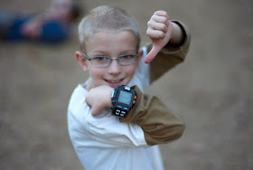 Oh, here's Blake. Not a baby. He got a spy watch for Christmas. I got spied on so much.